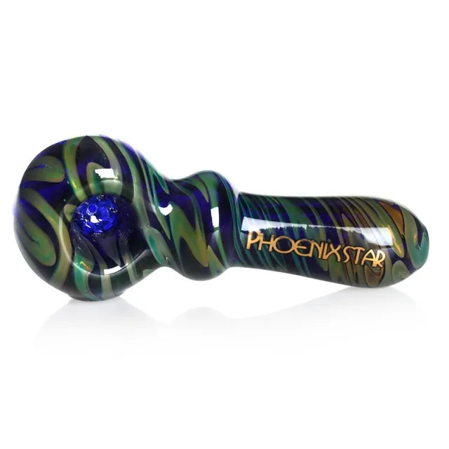 Phoenix Star Hand Pipe combines functionality with exquisite craftsmanship, providing a truly unique and enjoyable smoking experience. Its compact 4 inch size makes it convenient to carry and use on-the-go, while the ergonomic design ensures a comfortable grip during each session. The spoon pipe features a 7-hole glass filter screen design on the bong bowl, allowing for smooth airflow and excellent filtration. With each draw, you'll experience clean and smooth hits, enriched with the full flavours of your preferred herbs. This portable hand pipe displays the artistry of American colour rod detailing. Each piece is meticulously crafted to create captivating patterns and vibrant colours, making it a visually appealing accessory. The unique combination of artistic design and functionality sets this hand pipe apart from the rest.